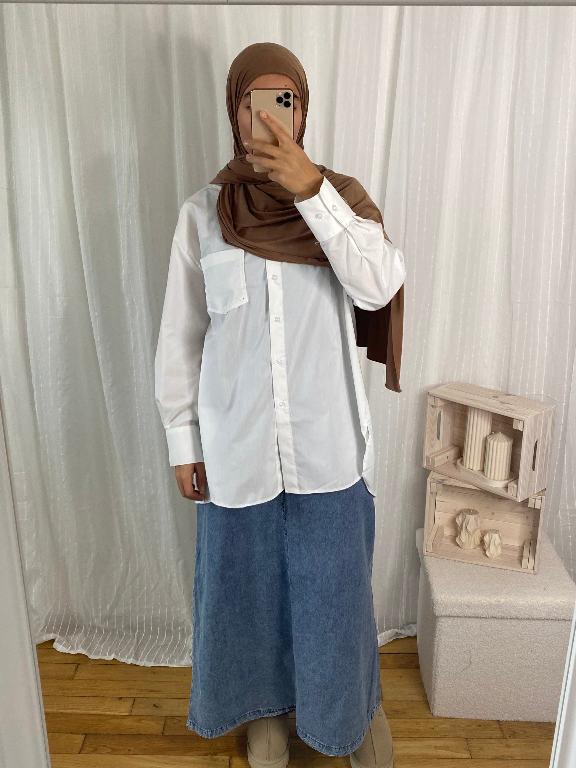 La chemise oversize longue à l'arrière sera parfaite pour être portée avec une jupe.