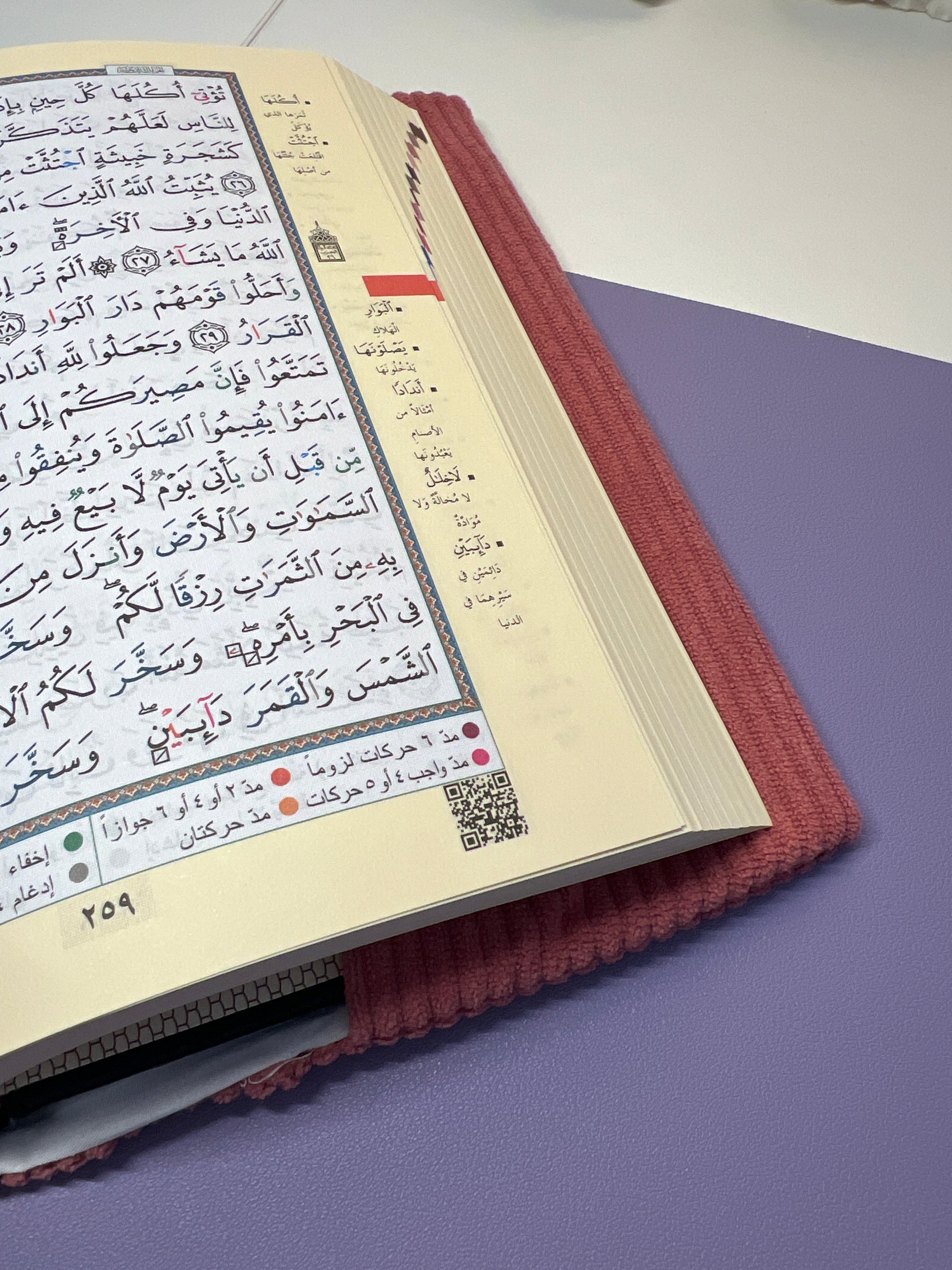• QR code sur chaque: Scannez le Qr code et écouter la récitation de chaque page.